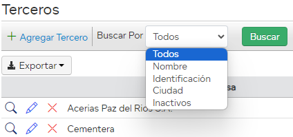 2. Despliegue las opciones de búsqueda que presenta la opción "Buscar Por:"