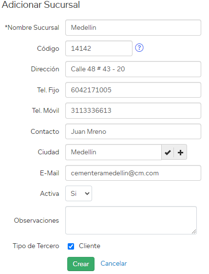 La creación de Clientes (terceros) se divide en 2 secciones, encabezado y sucursales: