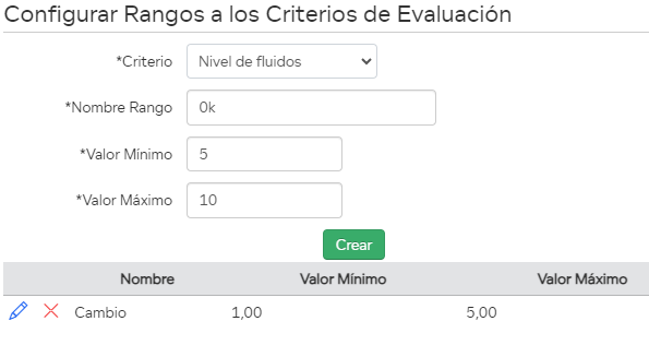 Desde este punto usted puede indicar al sistema cual es la forma que usara para la evaluación de cada una de las novedades o items que tiene el Checklist, un ejemplo, el criterio para evaluar el nivel de aceite puede ser "niveles" y estará compuestos por Full, Medio, Bajo, y el criterio de evaluación del estado de las llantas "llantas" es Bueno, Regular, Malo.