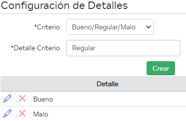 Después de crear los criterios, tiene la posibilidad de configurar cada uno de ellos, de esta forma podrá personalizarlos, para esto ingrese en el icono representado