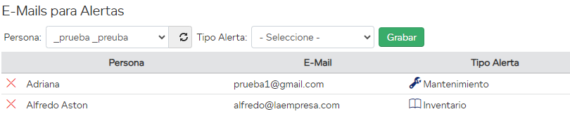 - El correo electrónico de la persona que recibirá las alertas se configura al momento de crear la persona en el sistema. (Ver Crear personal)