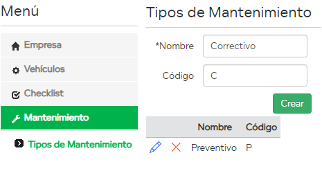 Para crear "Tipos de Mantenimiento" ingrese por: