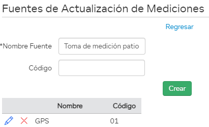 Usted podrá crear, modificar y eliminar Fuentes de Medición.