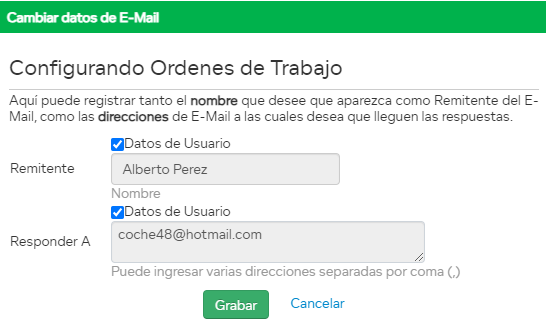 Para cambiar las direcciones de E-Mail o los remitente siga los siguientes pasos: