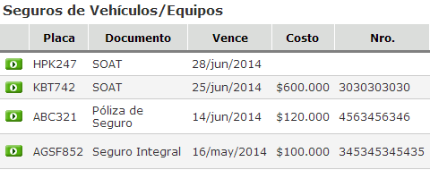 - Documentación de Vehículos/Equipos: Alertas a nivel de seguros, impuestos y otros documentos