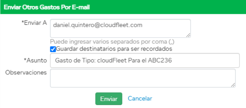 En cualquier momento que lo requiera, usted puede enviar un Gasto por Mail a la dirección de correo electrónico que desee.