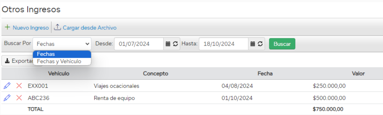 3. Podrá filtrar su búsqueda por Fecha ó Fecha y Vehículo.