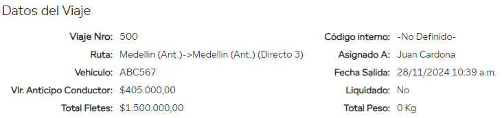 Encontrara un enlace Ver Liquidación de la Ruta el cual le mostrara los gastos predeterminados para esa ruta.