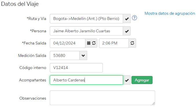 Desde este punto usted puede crear los viajes con sus respectivas rutas y vías, así como el valor del anticipo asignado al conductor, podrá registrar información como: